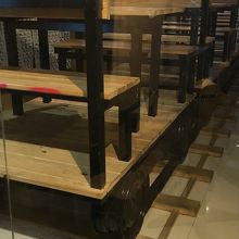 段ボールで作ってあり、トロッコの上に乗ってる席も。