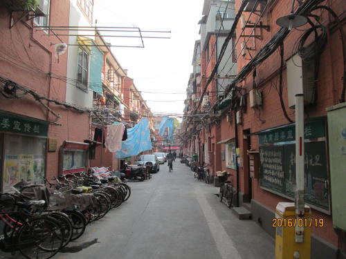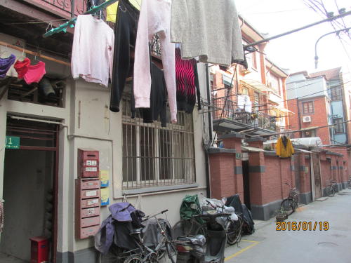 フランス租界を南北に走る住宅道路に今も残る住宅街花園坊。多くの住民が生活してます。