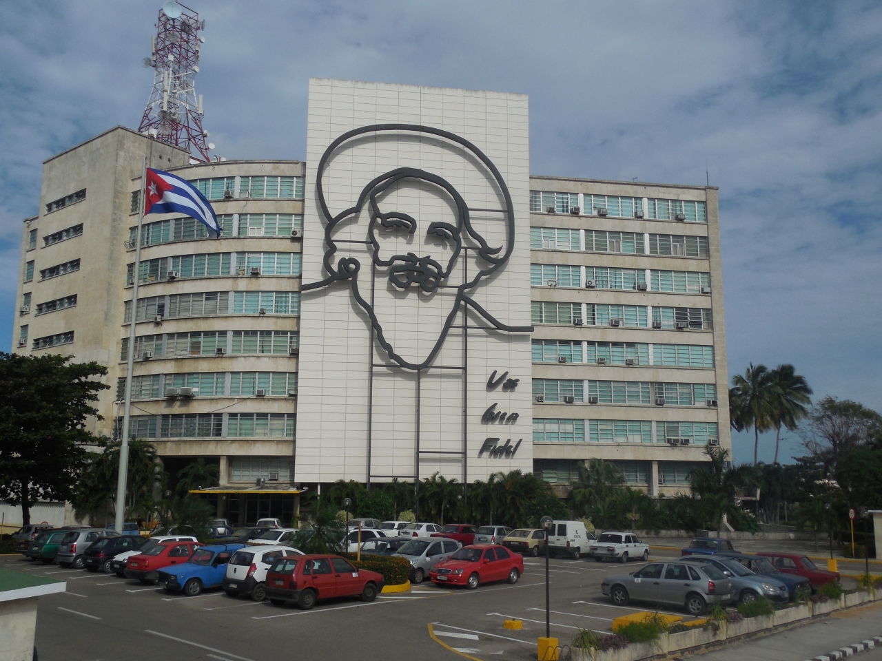 内務省に壁にゲバラ、情報通信省にカミーロの肖像が見えます。