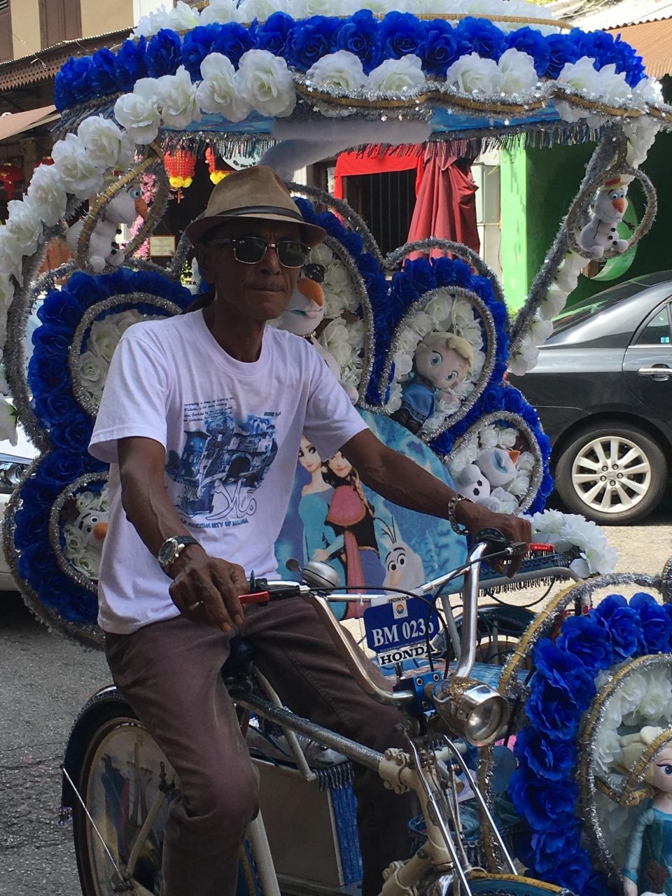 キティにアナ雪、ディズニーなどのキャラクターでデコレーションされたトライショーはマラッカの名物となっていました。客引きもすごいですが結構乗っているツーリストは多かったともいます。装飾だけでなくスピーカーから大音量の音楽を流しながら走っているトライショーもありました。