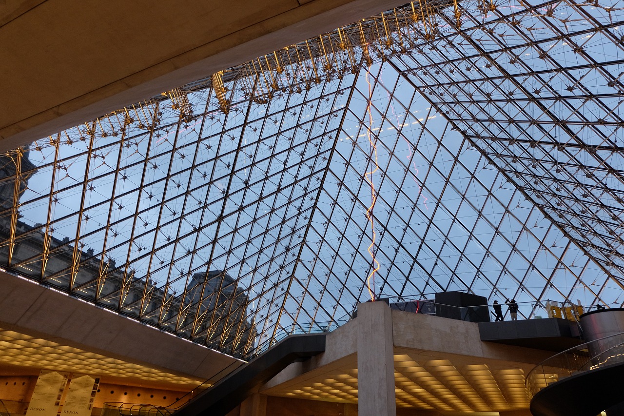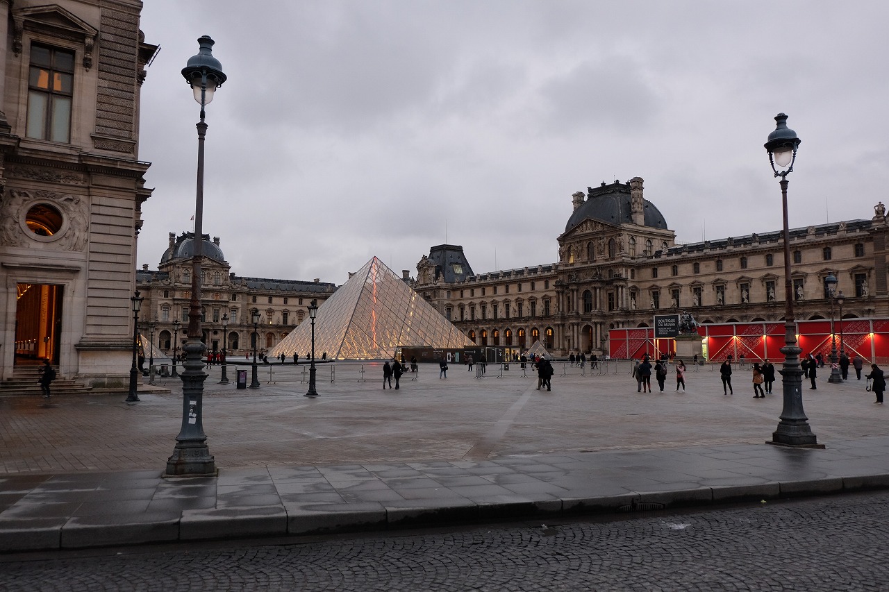 ルーヴル美術館にはメトロのパレ・ロワイヤル・ミュゼ・ルーヴル駅をあがって、一番近くの入り口から入ります。ミュージアムパスを持っていれば、ここの優先入り口から入れます。まず荷物のX線検査と身体検査を通って、エスカレーターを降りると、ガラスのピラミッドの下に到着します。ルーヴル美術館は大きく分けて、シュリー翼、ドノン翼、リシュリュー翼があり、半地下から、1階、2階と一部3階があり、迷路のようになっています。また展示方法が複雑で、真っ直ぐ進んでいても、いつの間にか別の展示になっていたりするので注意が必要です。事前にその日の目的をいくつか決めて鑑賞後、ゆっくりそれ以外を鑑賞する等の計画が必要です。モナリザの前は常に人だかりができているので、朝一番に向かうか、閉館まじかまで粘る覚悟が必要です。ちなみに、閉館は18:00ですが、17:30ごろから退館の放送があり、17:45には係官から退官を促されます。人がいなくなった部屋からドアが閉められていきますので、取り残されないように。