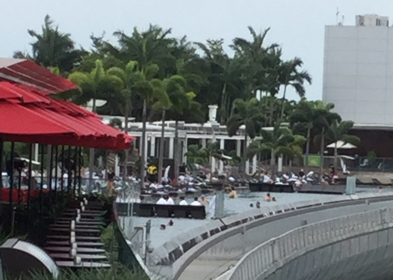 話題のプールは宿泊者のみなので、遠くから眺める感じでした。ただシンガポールの景色を高い所から見ることができたのでまあ満足かな。