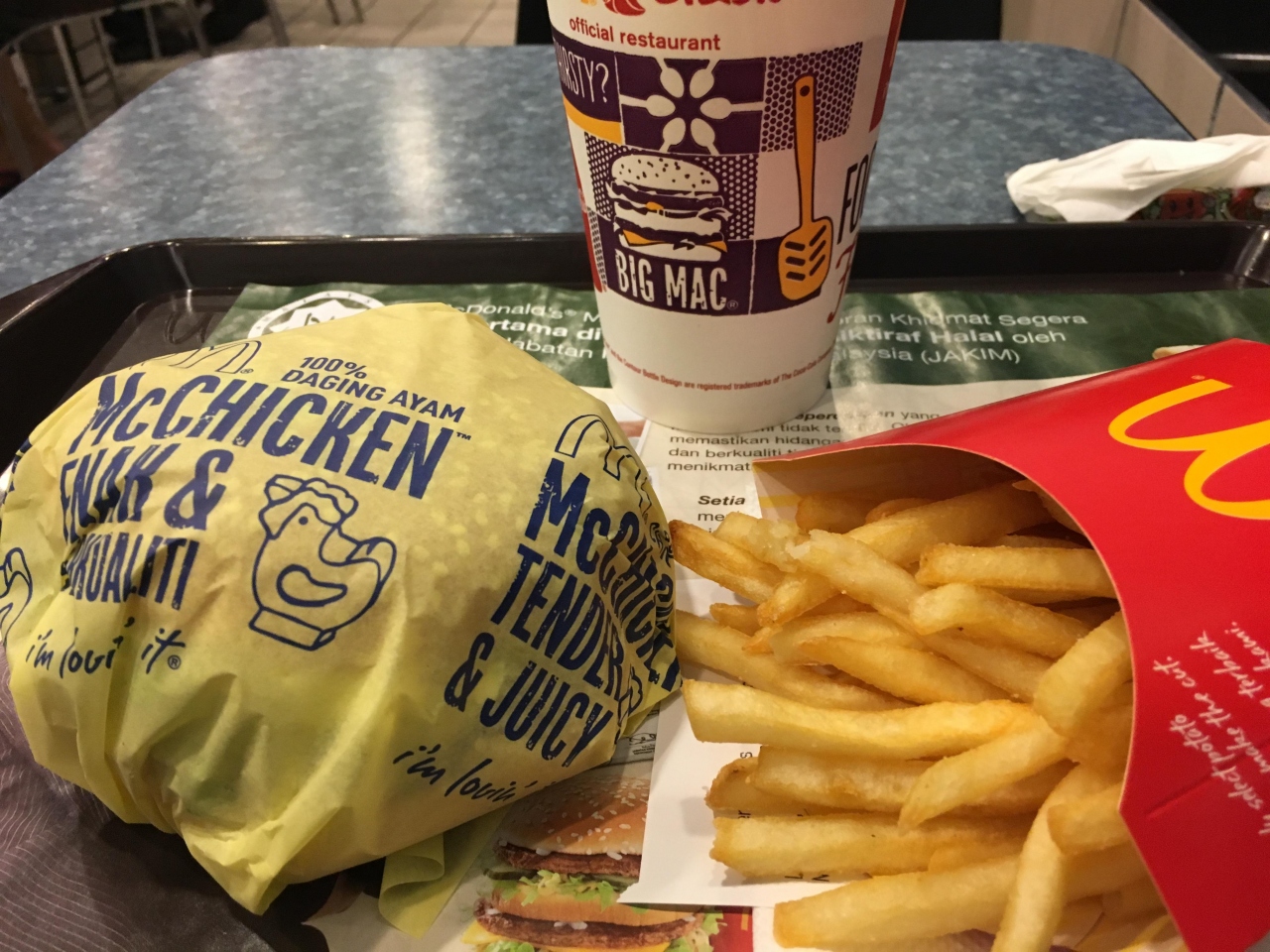 メニューはそれほど日本と変わりませんが、デザートメニュー(特にソフトクリーム)が安く人気のようでした。セットはフィッシュ、マックチキン、照り焼き、ビッグマック、チーズバーガーなどにポテトとドリンクで400~600円くらいでした。ポテトはおいしかったです。