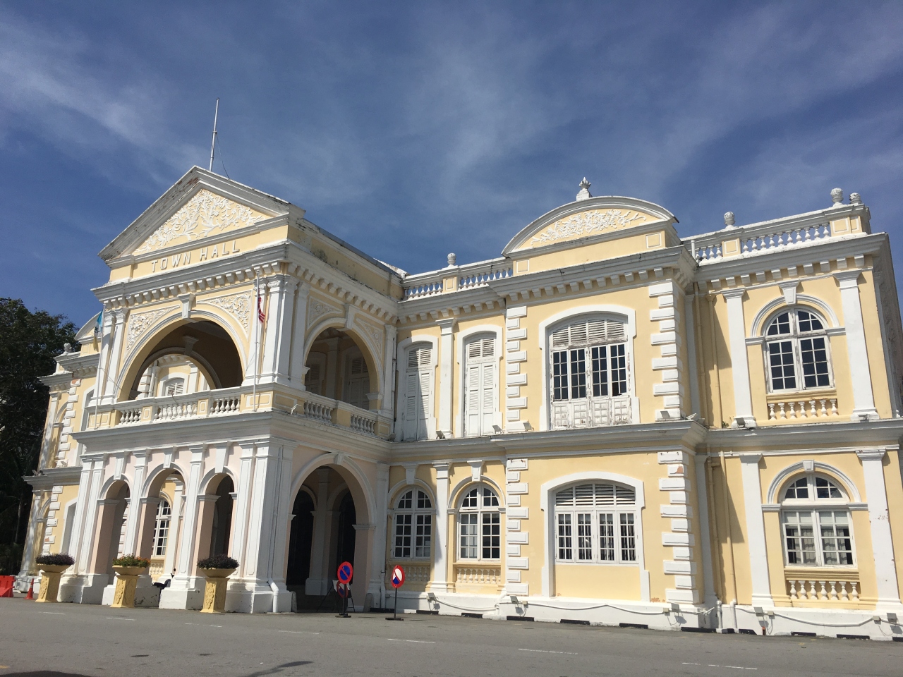 コタ・ラマ公園の端、ペナン市庁舎の隣にある淡いクリームイエローと白のコントラストが美しい建物です。市庁舎同様、中に入ることができませんでしたが、夜はライトアップされて昼間とはまた違う雰囲気を楽しむことができます。