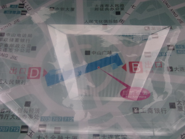 まだ開通後間もない2016年1月に私は大連の地下鉄を利用しましたが、空港駅からまず目指したのがこちらの駅で、空港からは約30分、運賃も4元で行くことが出来ました。この時点ではB出口とD出口のみがオープンしていましたが、どちらの出口も丁度中山広場の環状部分の直径の両端に位置する感じで、この広場を一周して巡るのにはとても便利でした。特に観光でいらした方は、空港に到着後はまずこの駅を目指されると良いかと思います。