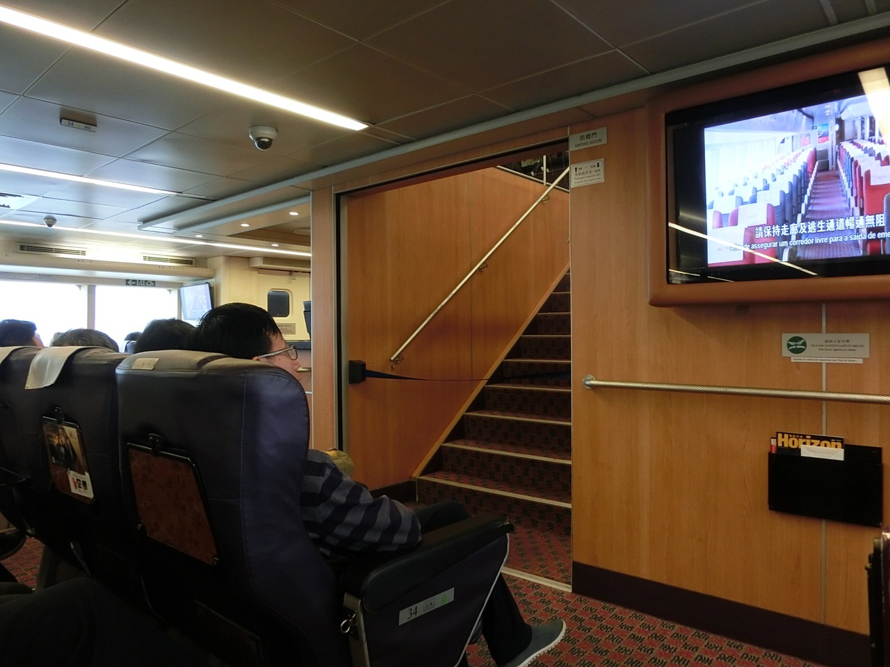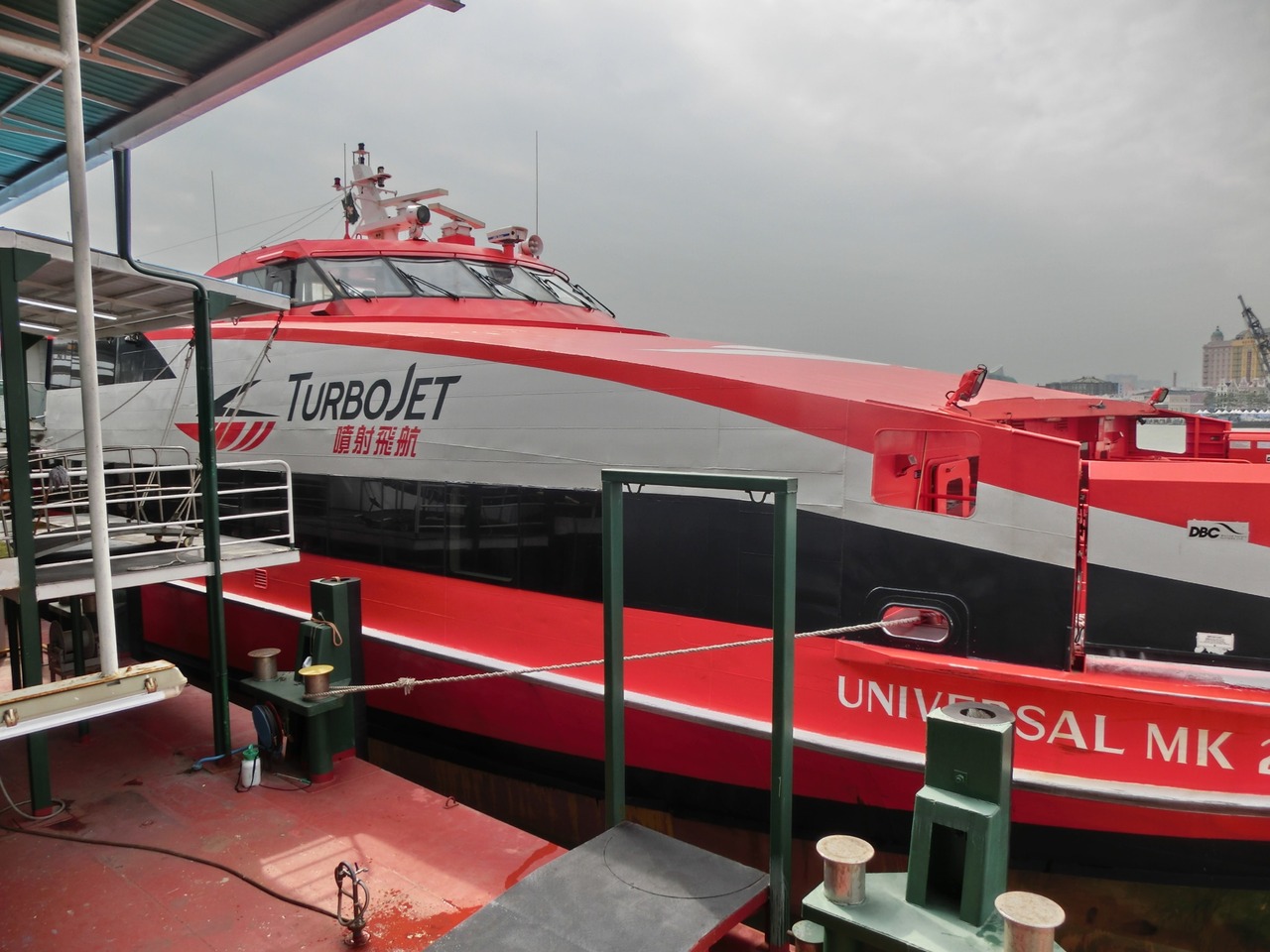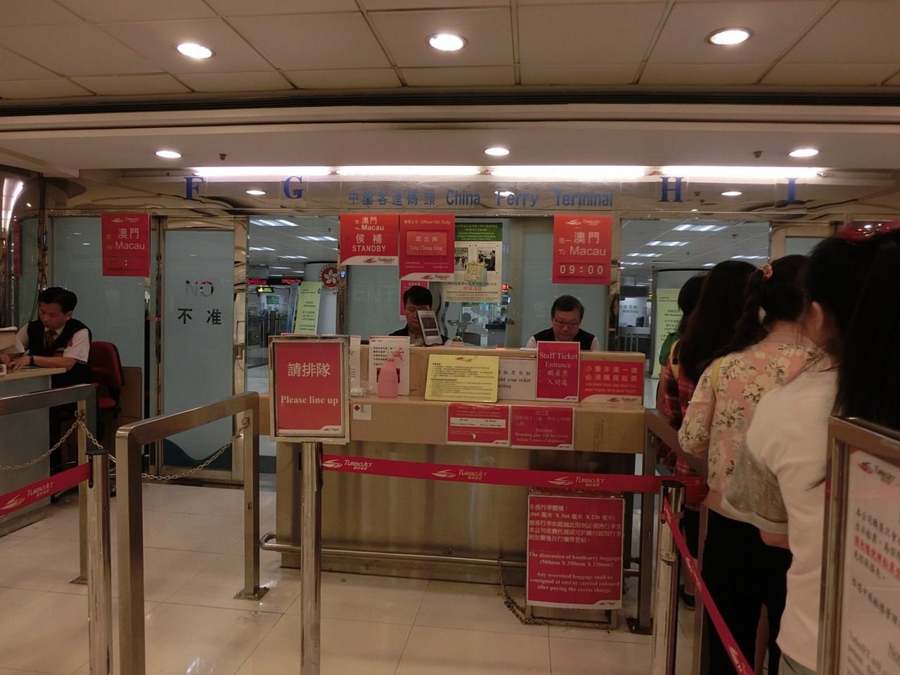 香港の金ピカのビルにターミナルがあります。一時間に一本なので、逃すと時間のロスがあります。また、日本から予約すると高いので、現地で買ったほうがいいです。が、不安な人は日本で買っちゃましょう。私は時間を調べず到着時は出発5分前。だからか、エスカレーターで上がった際に即、フェリー?フェリー?急いで!と、半強制的に現金で購入し、訳も分からずダッシュで船まで行かされました。笑