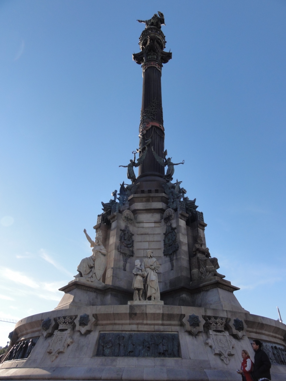 ランブラス通りの端っこ。港の近くにあります。右手は新大陸の方を指し、左手にはアメリカ土産のパイプが握られている。アメリカとの交易を記念して建てられ、バルセロナ万博の年に完成したそうです。高さ60mもあり、エレベーターで登る事が出来ます。