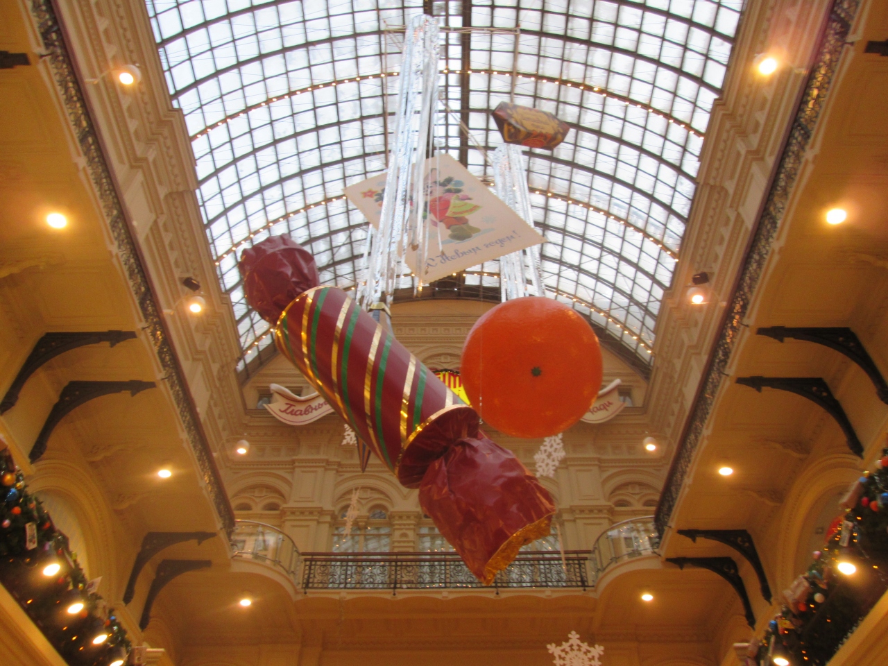 赤の広場にある国立百貨店の意味を持つ百貨店、吹き抜けの3階建てのアーケードがある売り場に外資系のブランド店やお土産屋、飲食店が並んでいます、各所にカフェがあり観光客に利用されています、冬でも寒さを感じないで買い物ができます。