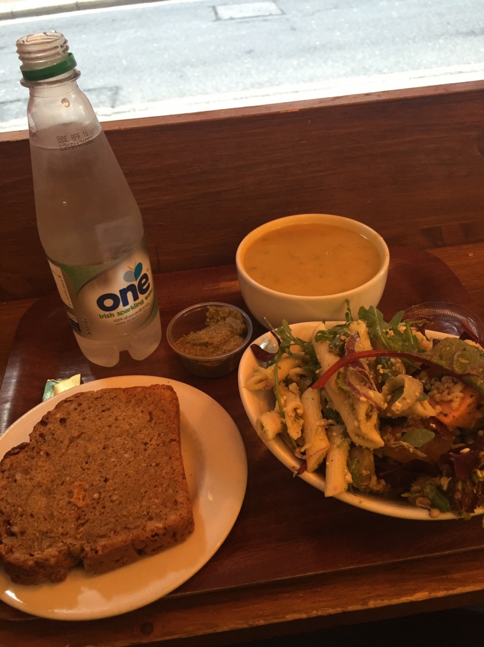 サラダはクレソンのものとお豆のとペンネパスタのをチョイス。スープはバターナットスクウォッシュにしたのですが、どれも素朴ながらとても美味しい。サラダには穀物も沢山入っているので沢山かまないといけないので、ものすごく満腹感があります。私が一番気にいったのはベジパテ。これどうやって作ってるんだろ?って思うくらいにすごく美味しかったです!
