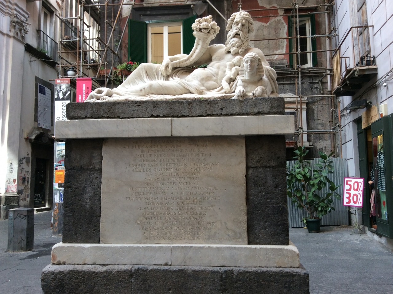情報誌で散策注意点に記載されていましたが、薄暗い路地が多く又ショプはキリスト誕生の場面を再現した人形だらけでした。サンタ・キアラ教会、ニーロ像など見応えある所が多いのに市街全体が犯罪の町に見えるのは残念です。