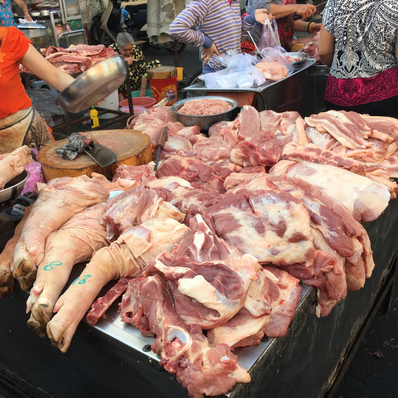 ハイバーチュン通りの教会の近くにある小さな市場です。観光客はあまりいませんでした。お肉屋さんには豚足や豚のあたまや耳など各部位に豪快に切断された肉をそのまま売っている光景はかなりインパクトがすごかったです。