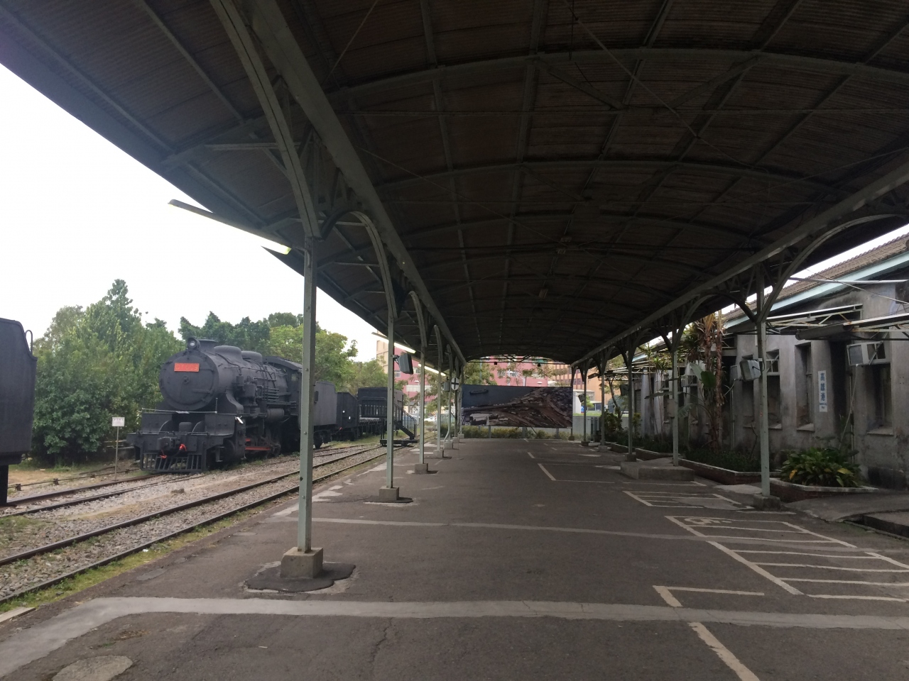 フェリーは1番出口からだけど、2番出口を上がると旧高雄湾駅を解放した駅舎、ホーム、線路と公園があります