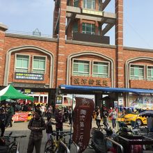 があり、手前の通りは土曜日だったので、屋台が多数出店しており、