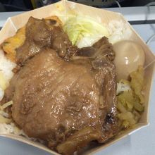 ドーンとデカイ排骨豚がのって、肉の下にもオカズが隠れている優れもの