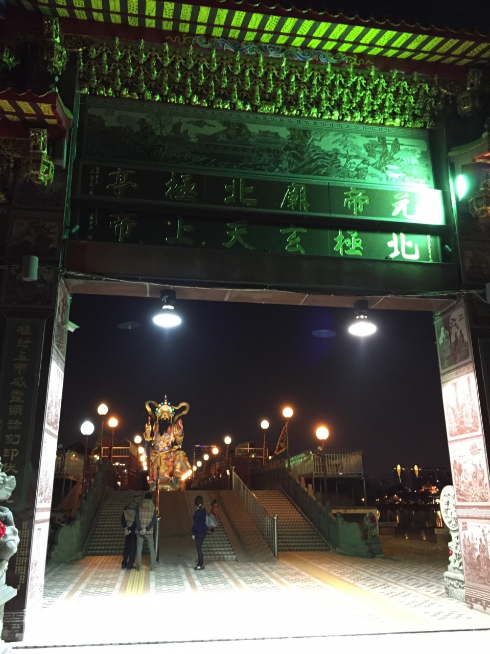 鮮明で立派な像でした。池に突き出て、ライトアップされて一層すごい