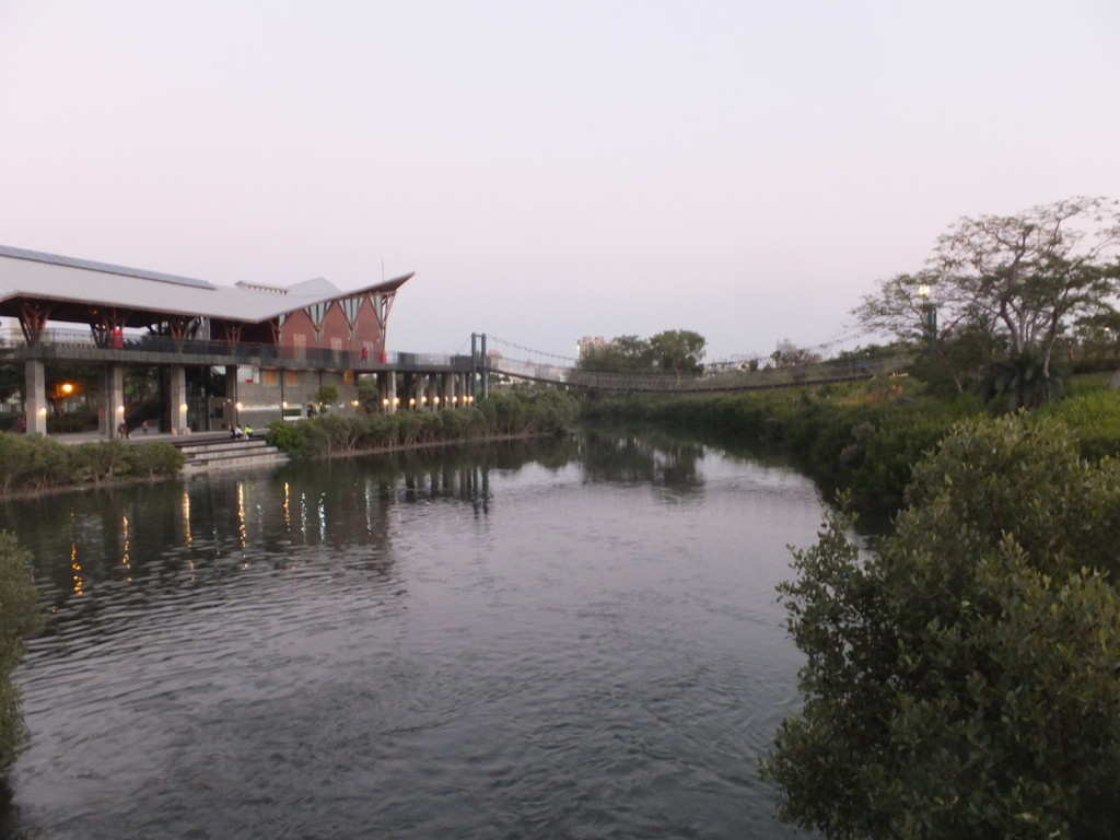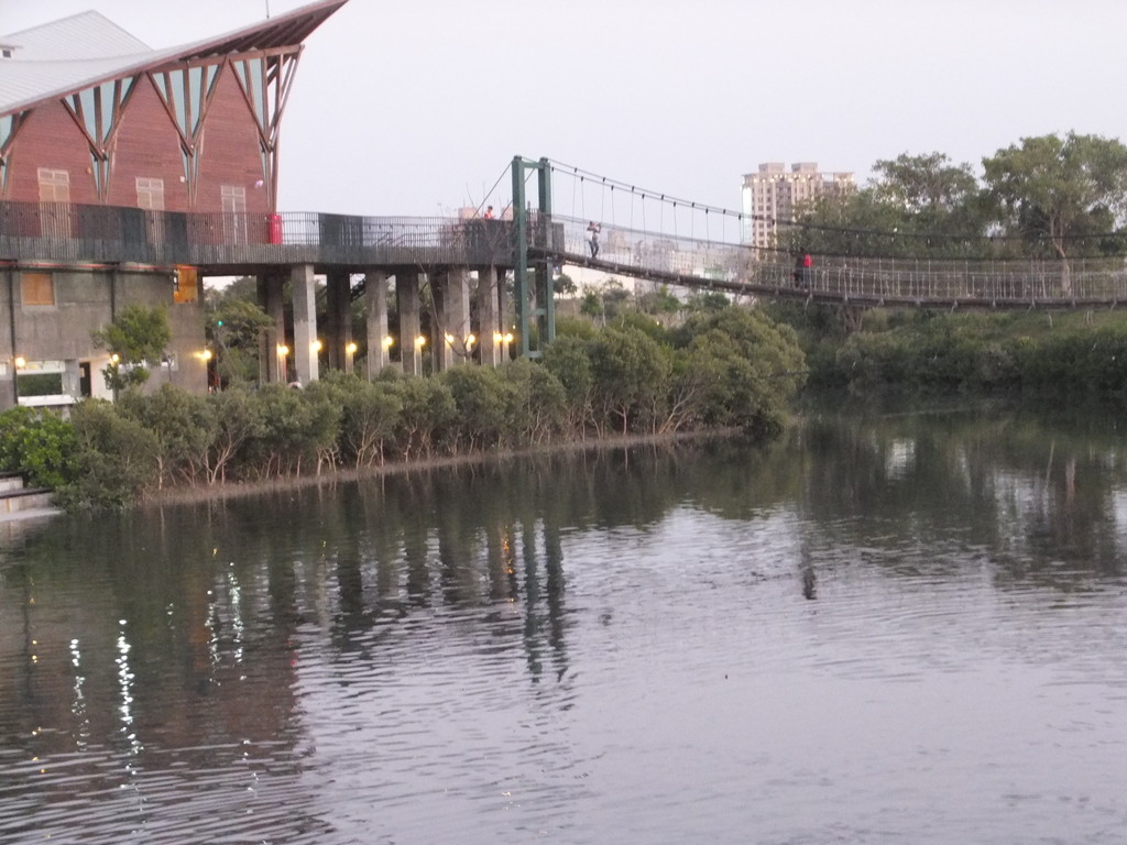 この場所は以前、貯木場だったようですが、人工の湿地に生まれ変わりました。涼しい季節に木製の散歩道を歩くのは、とても快適です。人工の湿地の周辺には、マングローブの林があり、池には多くの魚が泳いでいるのを見ることができます。高雄市では、湿地復活運動が盛んで、ここもその一つです。ここの木造建築(建物や散歩道)には、日本人の方も関わっているそうです。