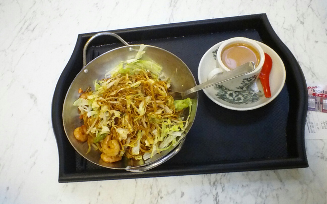 チャンギ空港のターミナル3にあり、屋台のフードコートです。ただ、現金で直接お店に支払いはできず、最初にレジコーナーで専用カードにチャージする必要がありました。チャージはカード引き落としもできますが、残ったら払い戻しにまた並ぶのが面倒でした。