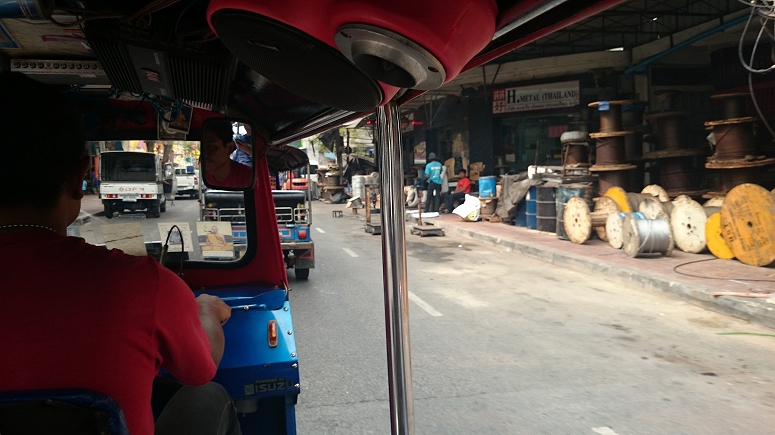 アジアでは有名なトゥクトゥク。そこかしこでおっちゃんたちがカタコトの日本語で「トゥクトゥク、ノル??」と声をかけてきます。エンジンをブン回し、車と車の隙間をビュンビュンすり抜けるのはかなり気持ち良いです。ただ、良心的なメータータクシーよりはるかにボッタくるので、事前に「○○バーツで○○まで行ってくれ。」と交渉したほうがいいです。