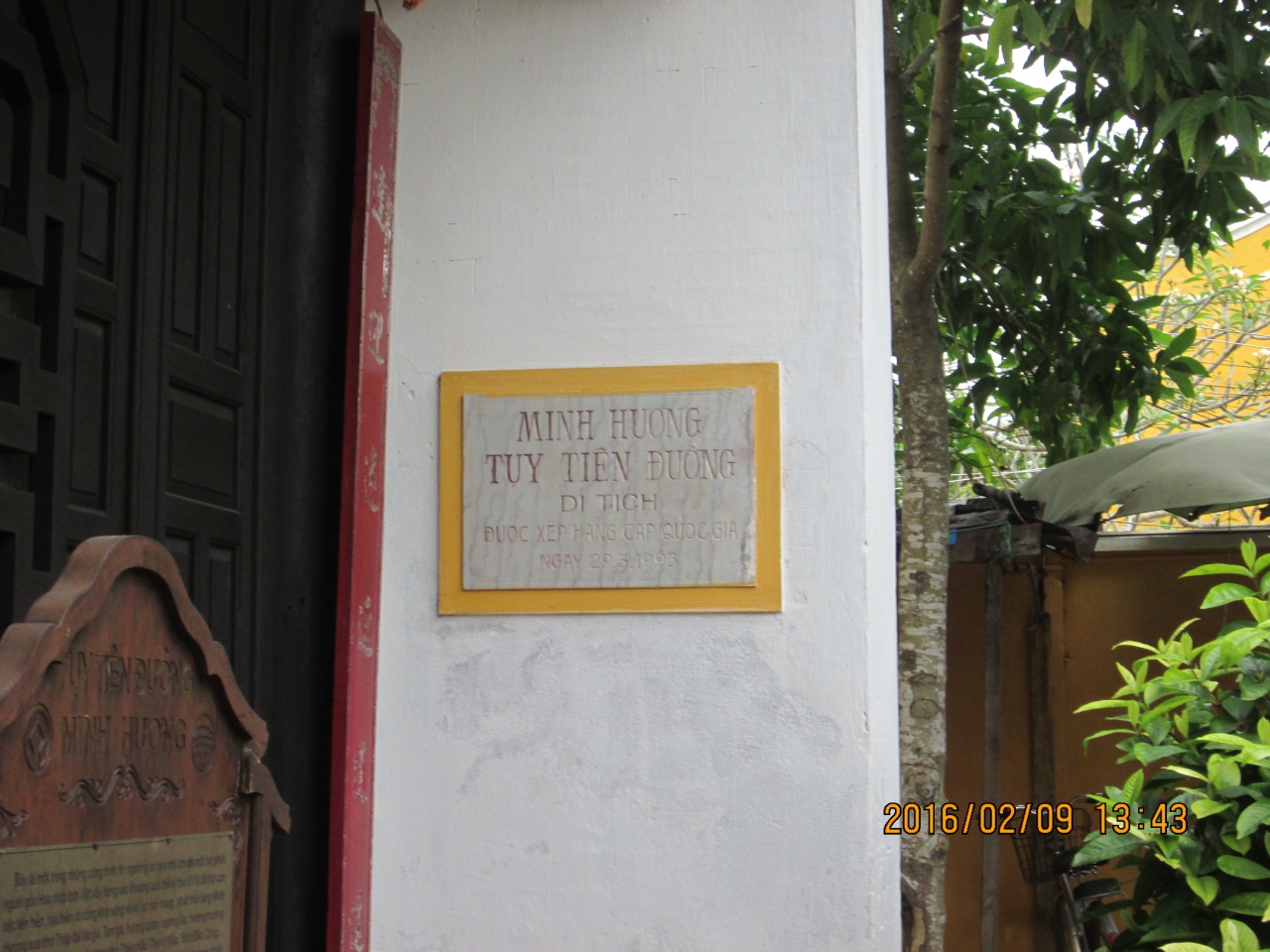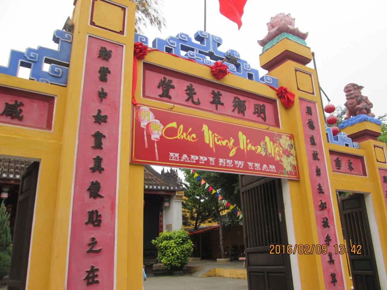 ガイドブックにも載っていないので詳しいことはわかりません。来遠橋の方から色々な会館を見ながら歩いてきてホイアン市場の近くにありました。来遠橋の向こうにも、地球の歩き方の地図によれば「郷賢祠」と思われる同じような派手な黄色の門があったけれど、何か関係あるのか、観光客には知る由もないこと・・