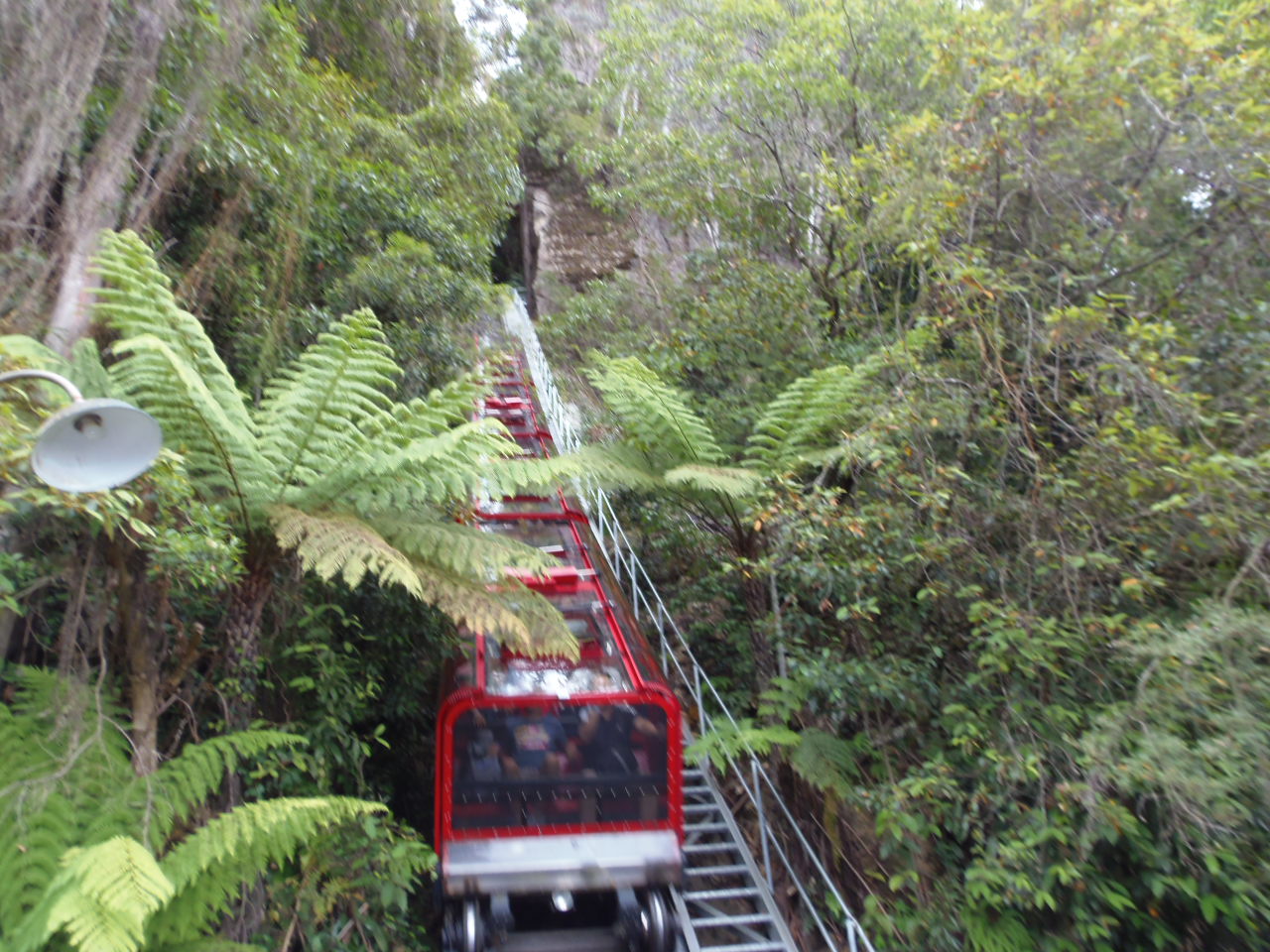 急斜面を下り降りる巨大なトロッコが人気。昔は本当に小さな石炭を運ぶトロッコだったそうですが、今は観光用に一列5人は座れそうな巨大なものになってます。斜面は急ですが、ディズニーランドなど遊園地でみなさん急な下りなど慣れているため、驚きは少ないです。登りもありますから、急な斜面をゆっくり背中を向けて登って行くという、めったに体験できないことをお望みならのぼりもどうぞ。私たちはケーブルウェイという名のロープウェイで登ってきてから、さらにスカイウェイと呼ばれる巨大なロープウェイに乗ってきました。ブルーマウンテンまで来たのだからついでにという感じで乗ってみては。