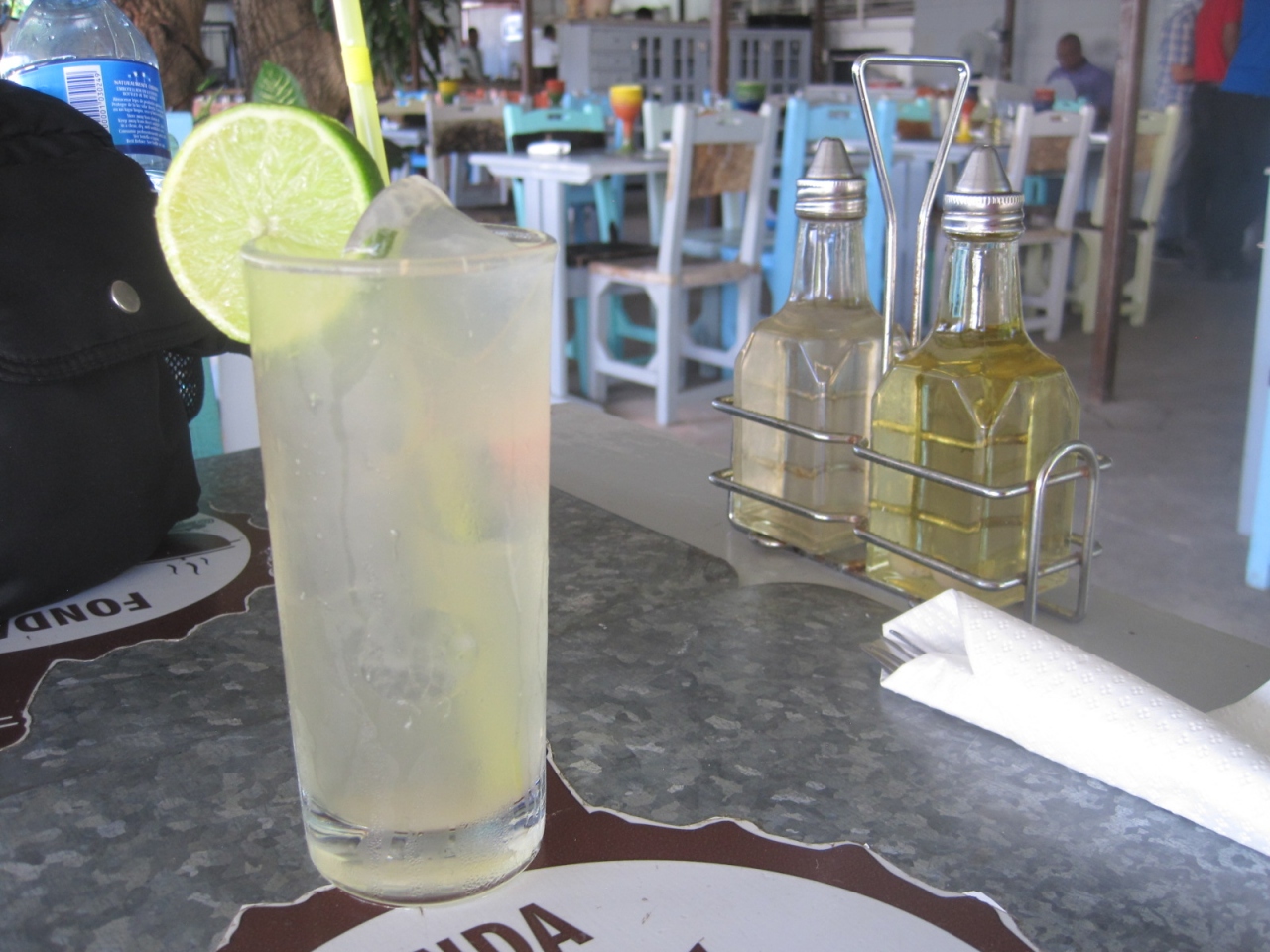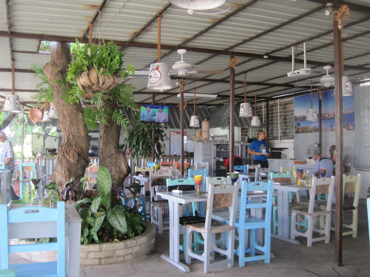 テーブルはすべて外、とりあえずのトタン屋根が覆っています。