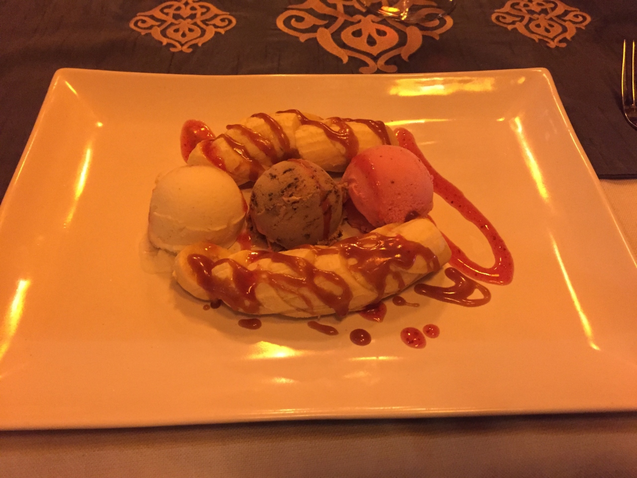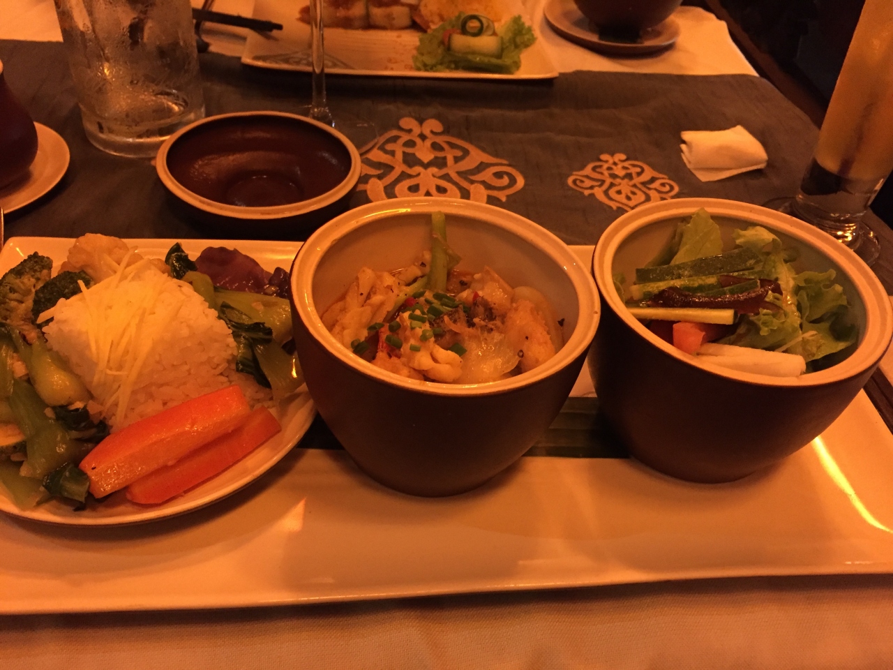 お料理はコースで前菜・メイン・デザートとも2つの中から選ぶというものだったので、二人で違うものを頼んでみました。どのお料理も美味しくいただきました。