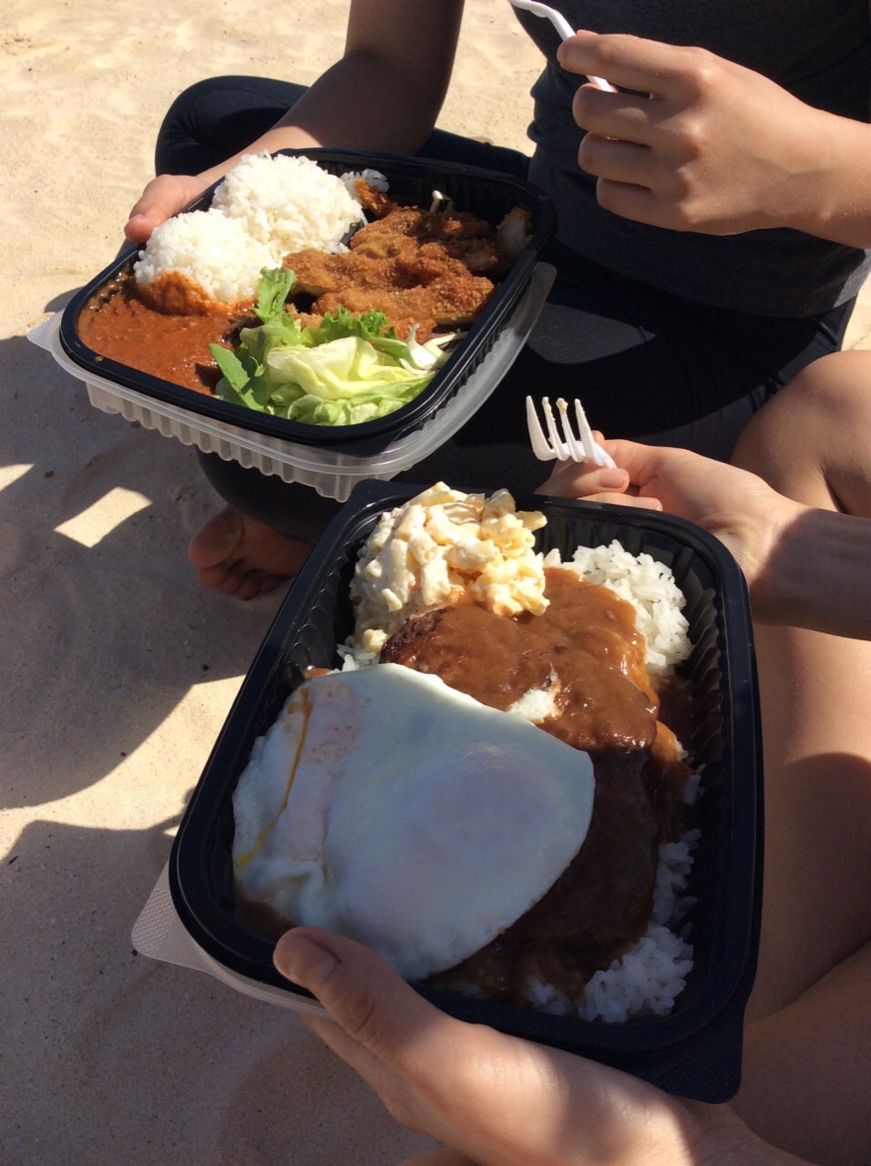 地元の人たちもよくいくお店です。ポルトギーズズープやロコモコなど、ハワイの食べ物もあり、値段も安いので行きやすいです。マカロニサラダやごはんなど、ハワイらしいです。また、マカロニサラダがいらない人はごはんにも変更できます。