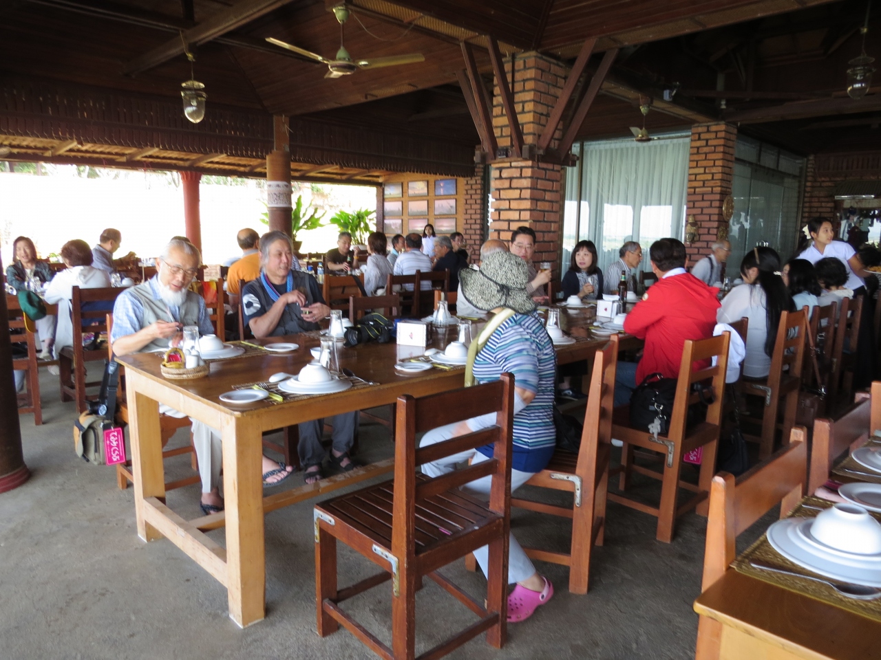 ニューバガン市街西側のエーヤワディー川(イラワジ川)の川岸に建つ、広い庭園を持つ素敵なレストランです。ミャンマーカレーを頂きました。スープと6種類の料理が出ました。ご飯が盛られた大皿に、中皿から料理を取り分けて食べます。食事はまあまあというところでしたが、レストランからのロケーションは最高でした。また、小仏塔(パヤー)や蘭の棚もあり、庭の散策もお薦めです。