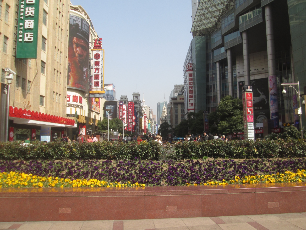 上海市中心の通りで人通りが非常に多いです。南京東路の一部は歩行者天国で、香港のネイザン・ロードのような派手な電飾看板が並ぶ、昔ながらの中国的な繁華街です。上海地下鉄の人民広場駅や南京東路駅が最寄りとなります。