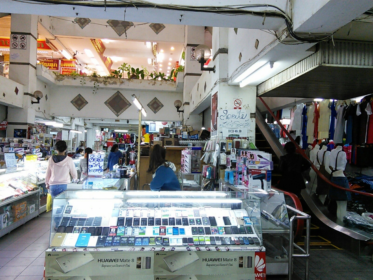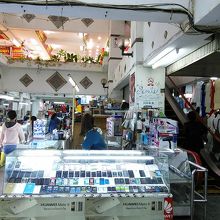 バスターミナルの西側にあるサワンナケートの巨大な中央市場。中央にはオレンジ色の三角屋根をもつ建物があります。1階は衣類、生活雑貨、スマホ、おもちゃ、バッグや靴などが一応エリア毎分けられて売られています。故障中のエスカレーターを昇った2階は眩いばかりの金行がずらりと並んでいます。3,4階は使われていないようでしたが眺めを見ようと上がって行ったら銃をもった兵士が現れ退出を促されました。どうも立入禁止のようです。