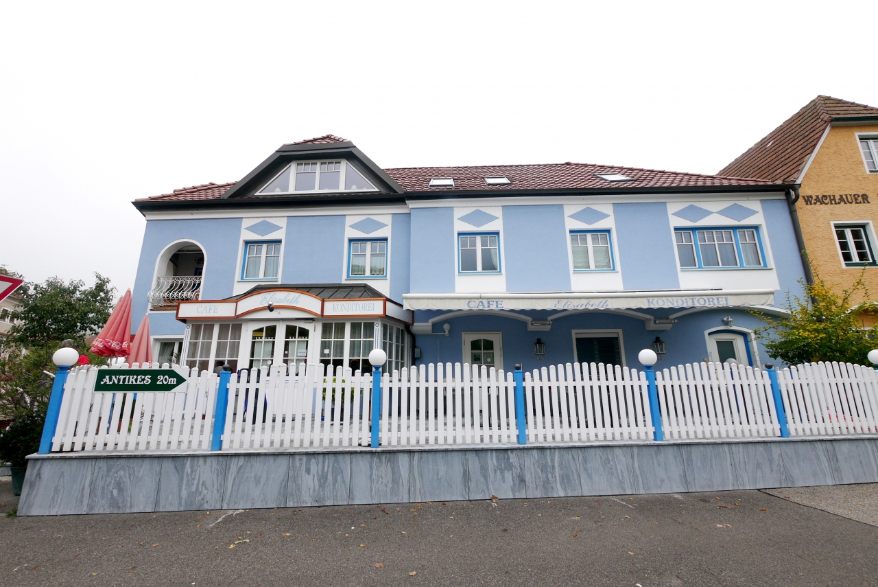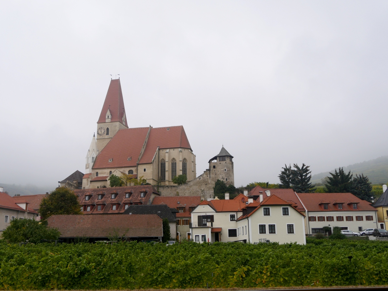 Weissenkirchenは静かな村だ.城のようなマリアの昇天教会があるところ,ぶどう畑が連なり,ヴァッハウ渓谷でぜひよりたい村と思う.この村のドナウ川近くの角にあるCafe-Konditorei Elisabethへ Einspanner(ウインナーコーヒー)とトルテがおいしかった.特にトルテは甘さを抑えて美味しい.昼食もあるので4等分したが,ケーキを食べる習慣がほとんどない私でも丸一個食べたかった.散歩に疲れたらぜひよるとよい.