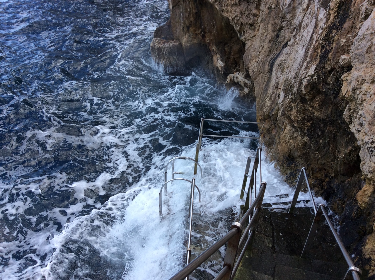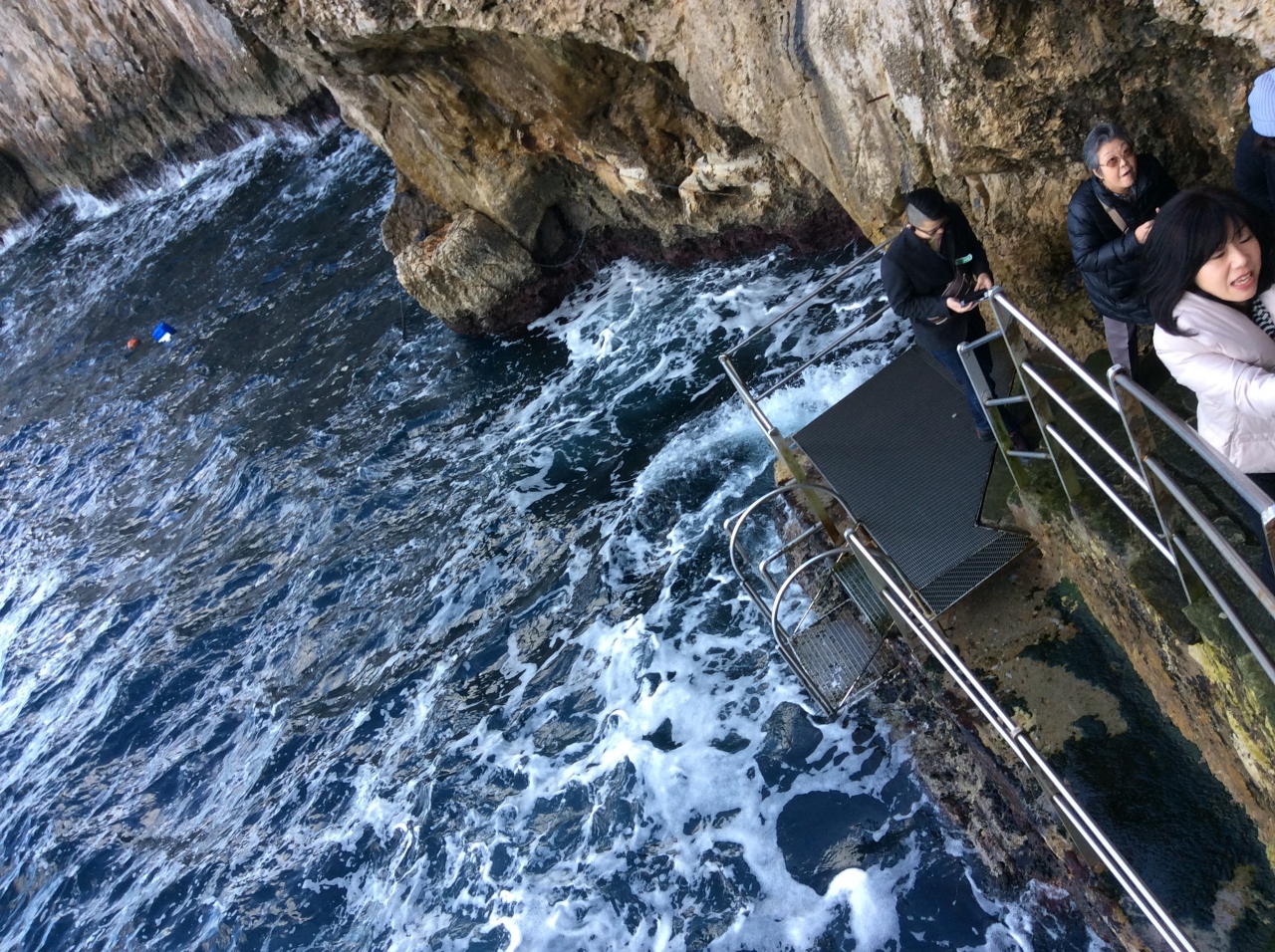 青の洞窟見にカプリ島へ渡りましたが、マリーナ・グランデ港には見学用小舟が一隻も有りませんでした。当日は欠航決定!残念ですがバスに乗り陸路見学に行きました。波高く洞窟内部は見えませが、情報誌の写真を空想しながら満足しました。海は透き通る青色、流石カプリ島です!