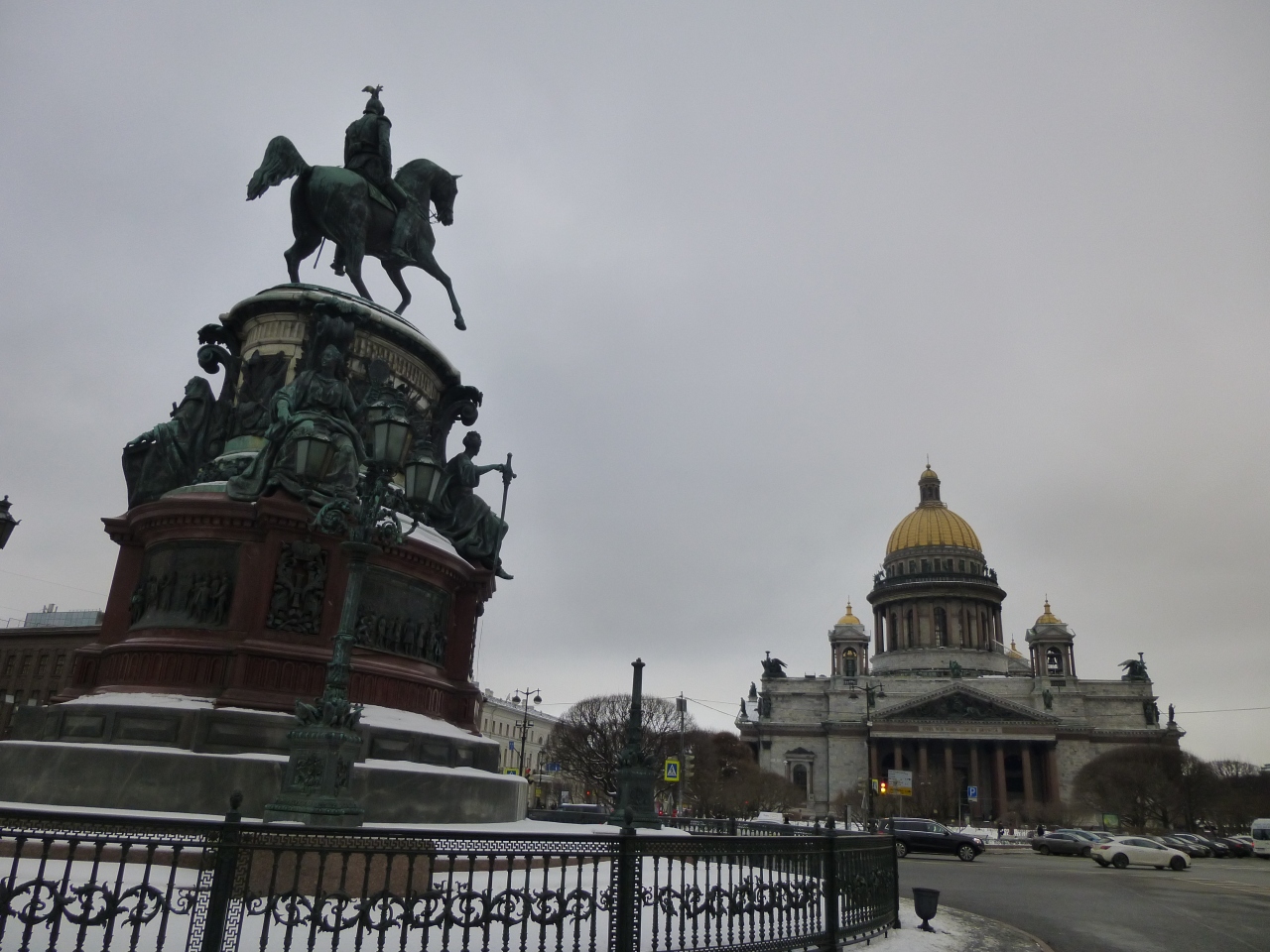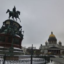 中央にはニコライ1世の騎馬姿の銅像があり、馬の後ろ脚のみで支えられているのがちょっとした見どころです。