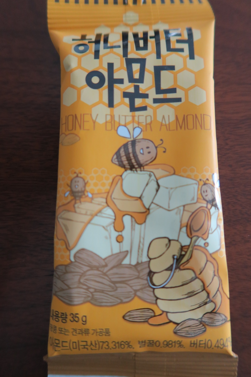今人気のハニーバターアーモンドは店舗入口にたくさん在庫があり、私もたくさん買ってきました。