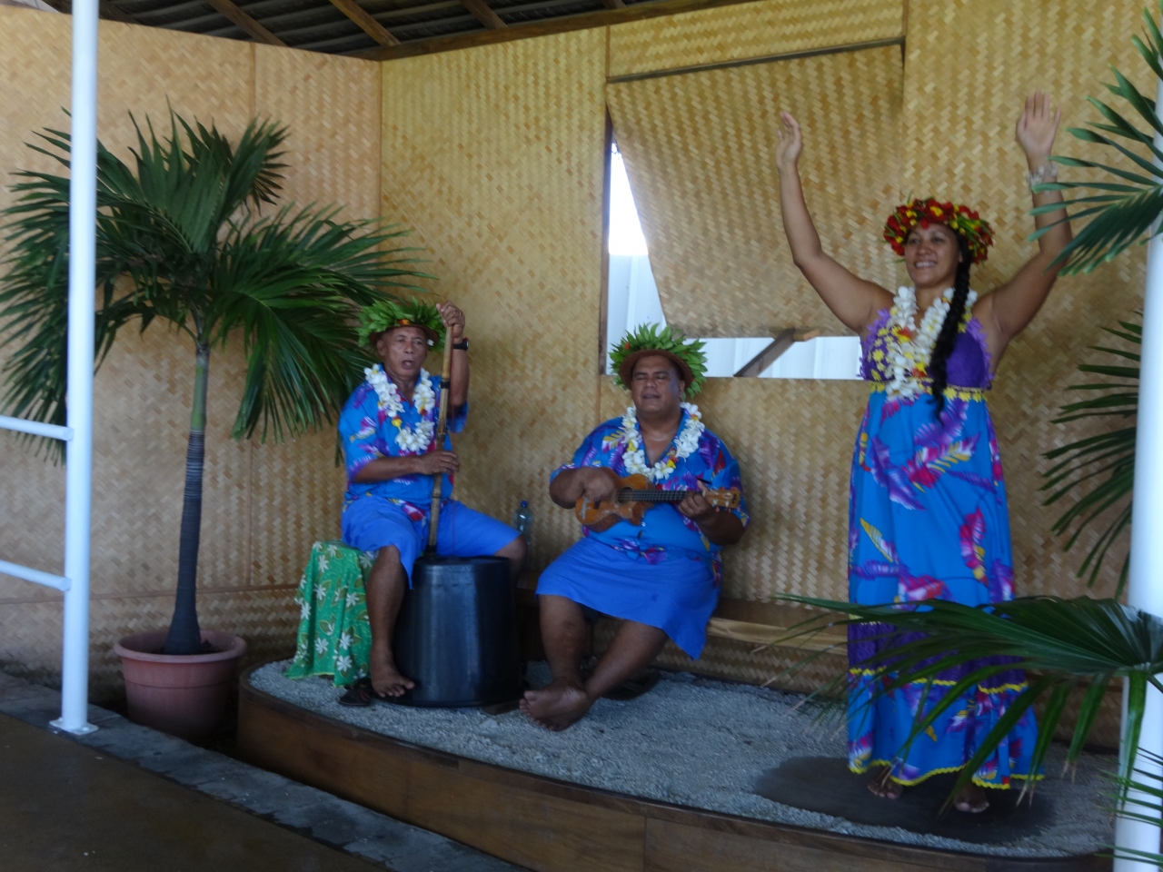 空港に着いて到着ロビーに入る手前でタヒチアンの音楽と踊りの歓迎を受ける。空港でこのような歓迎を受けるのは初めてで、なかなか感動的なものがある。「タヒチにようこそ」という看板とともにこの音楽と踊りによるエンタテインメントは素晴らしい。期待していなかっただけに鮮烈に印象が残った。