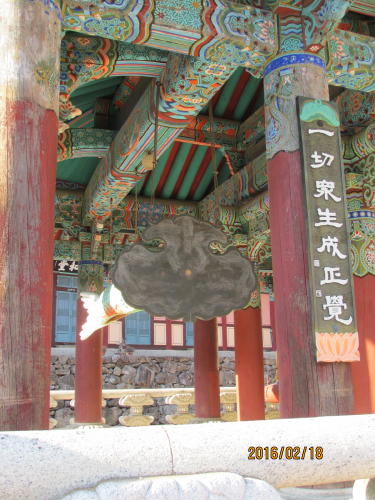 海印寺が世界文化遺産ではありません。蔵経板殿と言われる8万大蔵経を保存した建物が世界文化遺産に認定されました。建物は東西南北の4棟から成り長方形の形を成しています。1488年に完工した8万枚の蔵経板を保管した施設で世界最古と言われています。また蔵経板が世界記憶遺産に認定されています。蔵経板殿の構造はエアコンの無い時代に空気調節を完璧にした建物です。床の土は塩・炭と石灰・砂の順に敷いて湿度を調整したようです。建物の周りには窓が全面に上と下の窓の大きさを変えて風通しを良くしています。そんな昔に科学的な考えを持った人がいたなんて、?びっくりぽん”です。お坊さんは経も読んだが風も読んだのでしよう。現代は空気の読めない人が多くなりました。