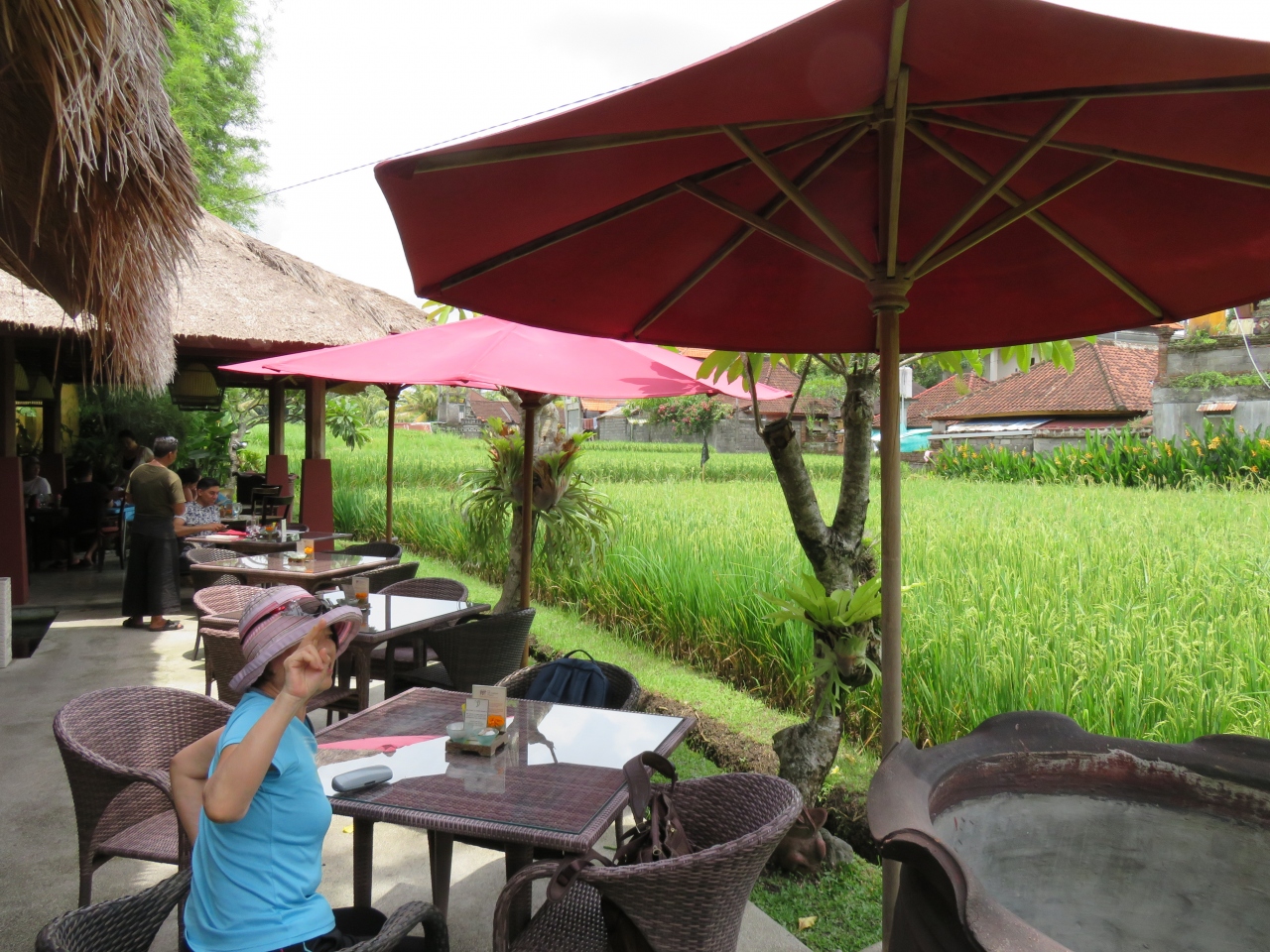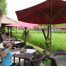 モンキーフォレスト通りに沿ってあり、お店に入っていくと奥に田んぼに沿った席があります。天気が良ければぜひこの席でカフェを楽しんでください。店員さんもフレンドリーで、気持ちがいいですよ。味もいいですが、値段は少し高めです。それでも中心部でこの風景を考えると納得します。