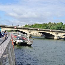 地下鉄トロカデロ駅で降りて、シャイヨ―宮からエッフェル塔に行くときに通る橋です。橋上はなんの装飾もありませんが、川側から側面を見ると、橋脚はアーチの連続で、鷲(?)の彫刻飾りもあって、シンプルながら力強いデザインです。なお、この橋のたもとにはバトーパリジャンの船着き場があります。
