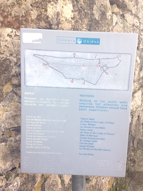 オビドスの城壁は歩けるようになっており、街並みを歩いているのと別の角度から楽しめます。ロードマップもあります。何か所か登れる階段があるので全部歩かなくても、途中で降りることができます。城壁の上には上らないようにガイドの方には注意されました