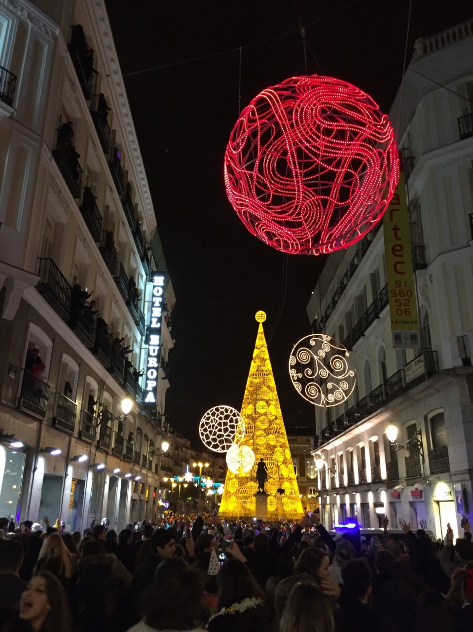 広場内の群衆は年明けて大盛り上がりで、ブドウを食べています。