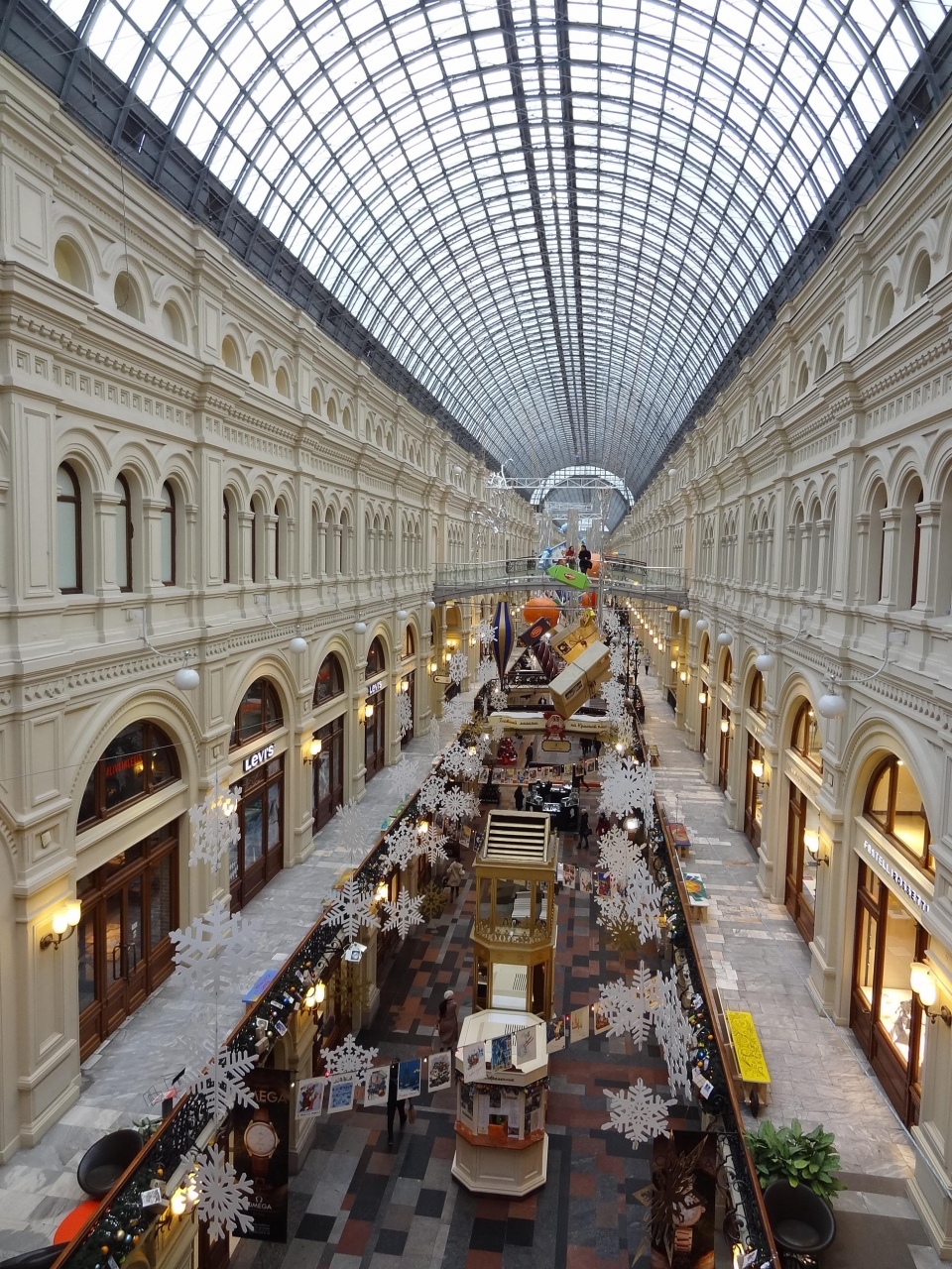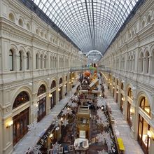 赤の広場に面してあるロシアの高級デパートです。外観も立派ですが、内部も吹き抜けになっていてとても綺麗でした。ヨーロッパの高級ブランドや現地の有名メーカー(ボスコ)、カフェにフードコート、スーパーとなんでも揃います。特に1階にあったスーパーはグム百貨店オリジナルの紅茶やチョコ、ジャムなどもあり値段は高いですがお土産として買うのにお勧めです。