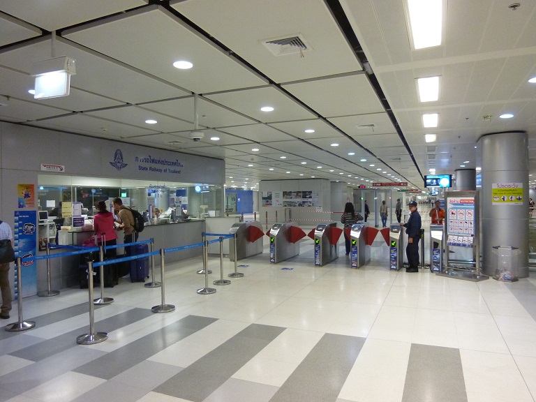 スワンナプーム国際空港駅からバンコク市内まではエアポートレイルリンクを使うと30分ほどです。駅にはこれといった設備はありませんが、エスカレーターで上に上がればすぐ空港ビルで、飲食店や物販店が多数ありますから問題ないと思います。