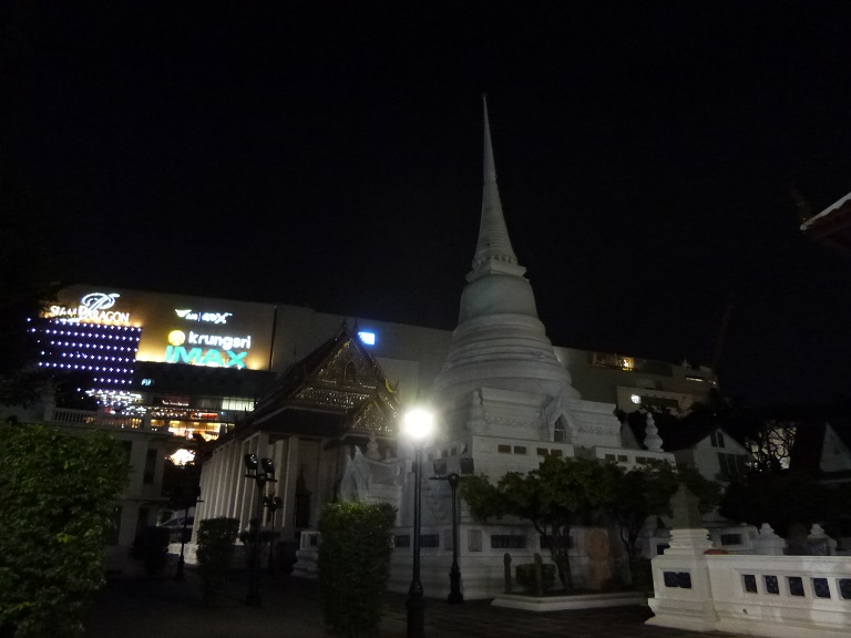 セントラルワールドとサーヤムパラゴンに挟まれて建つ小さなお寺で、訪れる人も少なくひっそりをしています。お寺といっても緑地公園のようになっていて、都会の喧騒に疲れた時に一歩足を踏み入れると心が休まります。