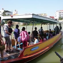 頻繁に出ている渡し船。片道5バーツ。自転車があると10バーツ。