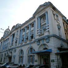 白壁に淡いブルーの色合いも美しい歴史建築は、旧インド帝国銀行の建物です。