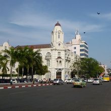 Mahabandoola 通りとMahabandoola Garden 通りの交差点に建つ大きな建物は、イギリス植民地時代の1910年にRowe & Co. Department Store(ローエ&カンパニーデパート)として建てられ、「東方とハロッズ」とも讃えられた百貨店でした。白壁には一部グレーの配色が施され、茶色の屋根と併せた落ち着いた色彩と、随所にみられる手の込んだ装飾も相まって、類まれなる名建築といって良いでしょう。現在は出入国管理局として使われています。