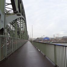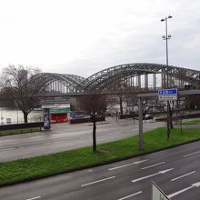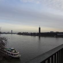 線路沿いの橋でして、電車の往来とライン川を楽しむことができます。