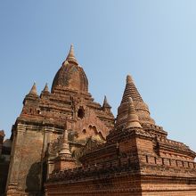 ニャウンウー村からティーリーミィンローに向かう途中、メインロードから少し外れたとろにあるお寺で、迫力ある遺跡の風景を楽しむことができます。ここは近くに小ぶりのいくつもの仏塔が建っていることもあり、奥行のあるダイナミックさを感じることが出来ます。