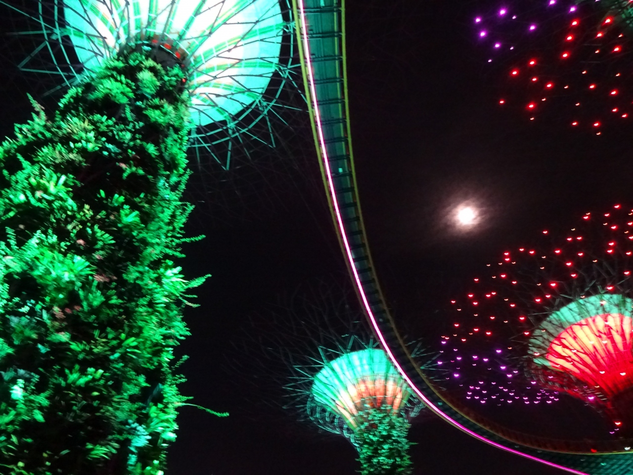 スーパーツリーが音楽に合わせ、様々な色に変化していきます。