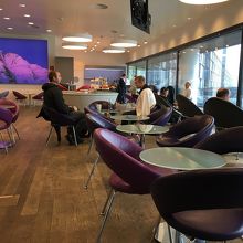 食事はサラダ、スープなどの軽いものがあります。電源は一部の席にありました。